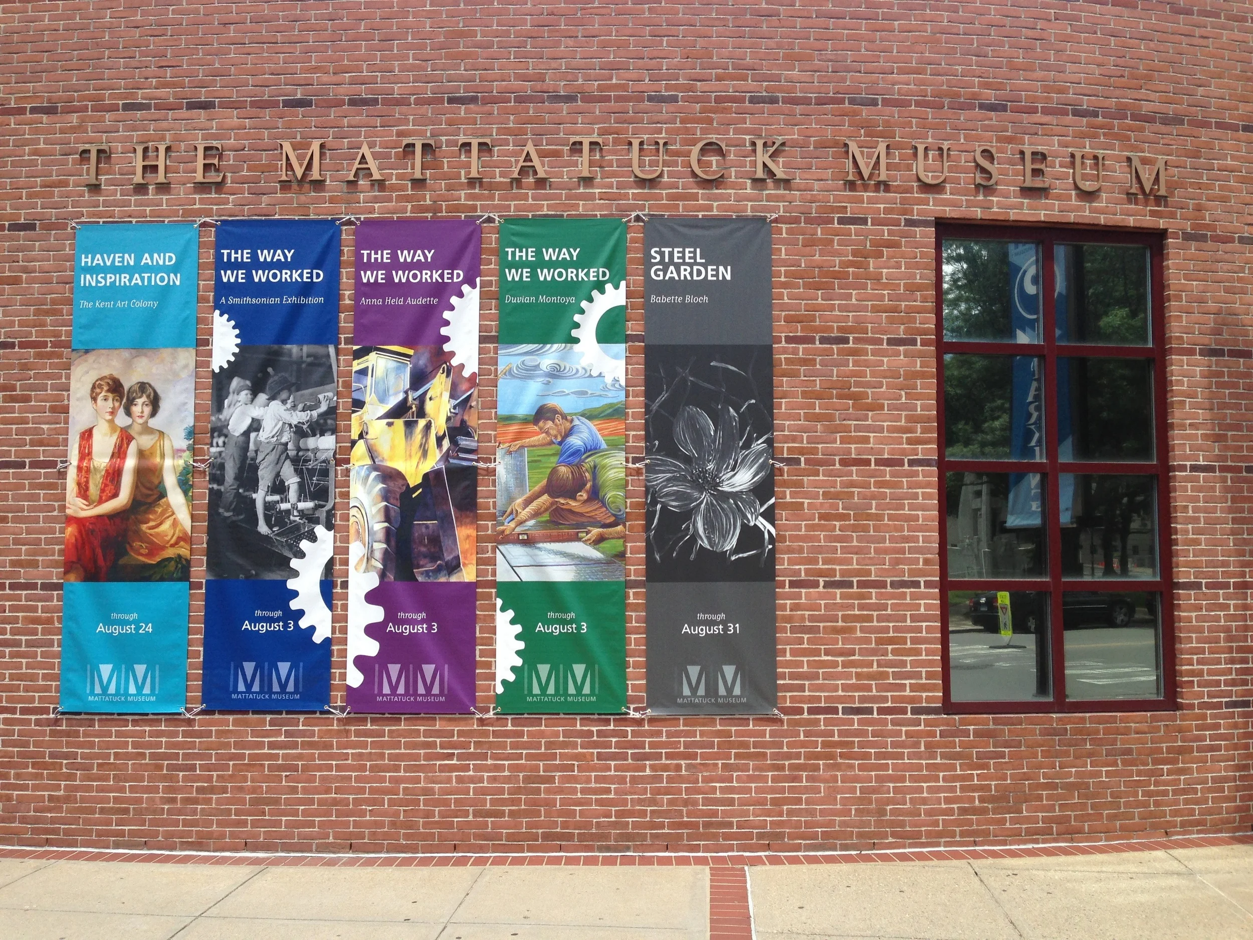 A large banner of my work on the front of the Mattatuck Museum....Awesome